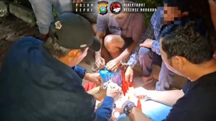 Anggota Subdit I Unit 2 Ditresnarkoba Polda Kepri yang berada di lokasi menyergapnya dari dua arah.