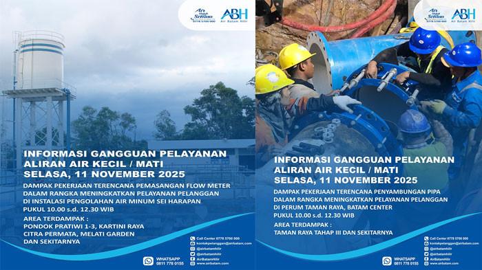 | Jadwal Mati Air di Batam Hari Ini Sasar Jodoh, Bengkong dll, ABH Umumkan Informasinya |