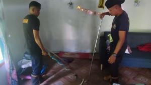 | Damkar Lingga Evakuasi Ular Tedung Sepanjang Dua Meter dari Rumah Warga di Desa Merawang |