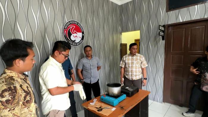 Dua paket plastik klip berisi kristal bening yang diduga kuat merupakan narkotika jenis sabu itu, dimusnahkan dengan cara dilarutkan ke air panas mendidih hingga mencair, lalu dibuang ke dalam tanah yang telah disiapkan.