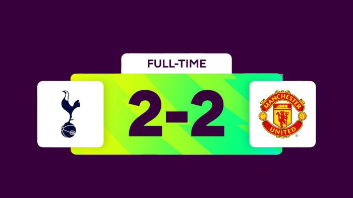Pertandingan Tottenham Hotspur vs Manchester United di Stadion Tottenham Hotspur, London, pada Sabtu malam WIB itu berakhir dengan skor 2-2.