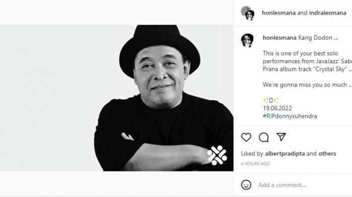 Musisi Donny Suhendra meninggal dunia, Minggu (19/6/2022). Indra Lesmana hingga Addie MS sampaikan rasa turut berduka diakun media sosial mereka.