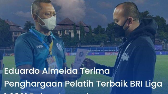 Pelatih Arema FC Eduardo Almeida menerima penghargaan sebagai pelatih terbaik BRI Liga 1 2021 untuk periode bulan Januari 2022