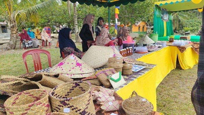 Kerajinan anyaman dari daun purun, daun pandan, dipasarkan saat perayaan Hari Jadi Desa Bukit Belah di Lingga