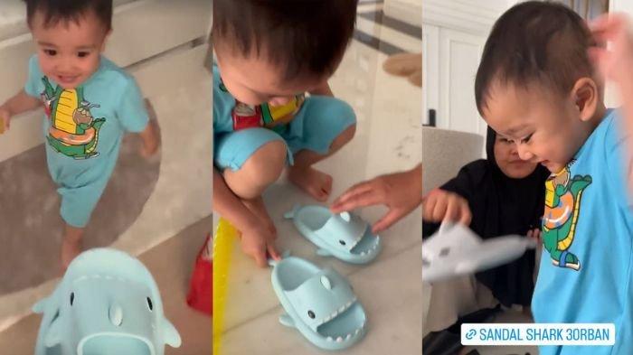Nagita Slavina membelikan sandal berkarakter hiu warna biru untuk Rayyanza yang langsung buat Cipung kegirangan meski cuma seharga Rp 30 ribuan.