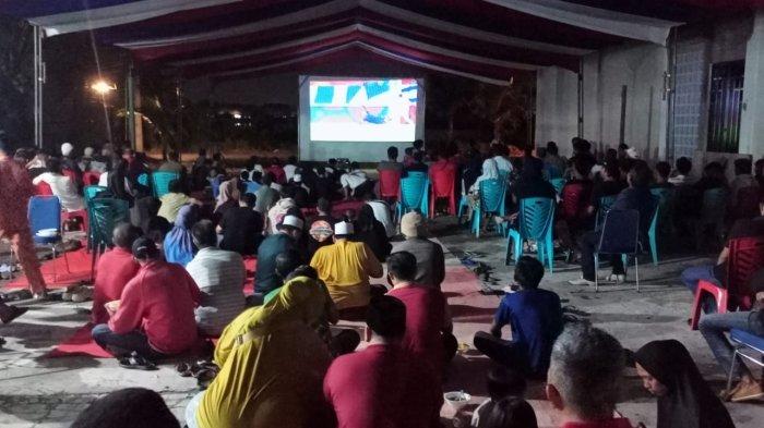 Antusias warga nobar dengan memadati halaman rumah calon Wakil Gubernur Kepri Aunur Rafiq, di Komplek Telaga Riau, Selasa malam (15/10/2024)