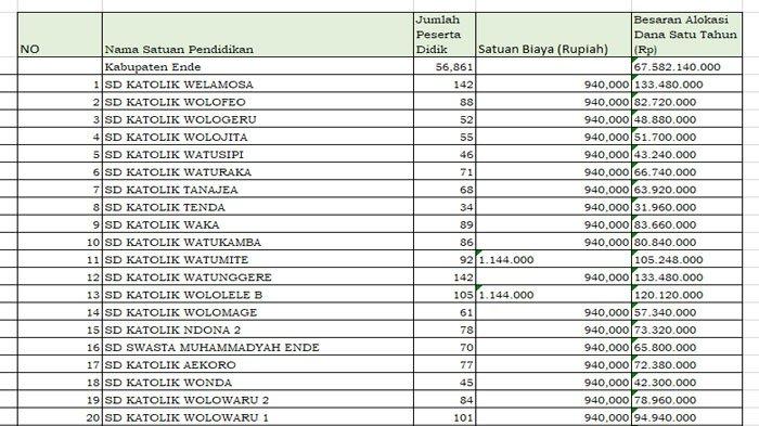 Kabupaten Ende, Nusa Tenggara Timur mendapatkan alokasi dana BOS 2025 SD, SMP, SMA, SMK total sebesar Rp 67.582.140.000.