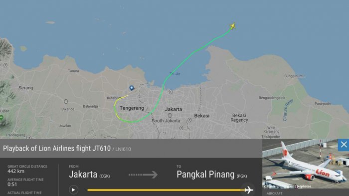 Pesawat Lion Air JT-610 rute Jakarta-Pangkal Pinang dengan jadwal keberangkatan dari Bandara Soekarno-Hatta pada Senin (29/10/2018) pagi.Senin, 29 Oktober 2018