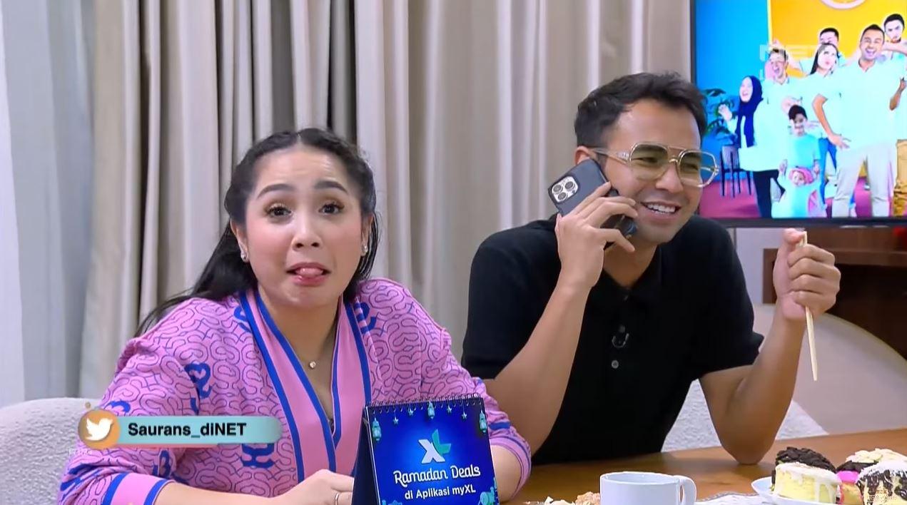 Nagita Slavina memberikan sebutan pada Raffi Ahmad sebagai orang aneh saat pura-pura melakukan panggilan telepon dengan Laudya Cynthia Bella.