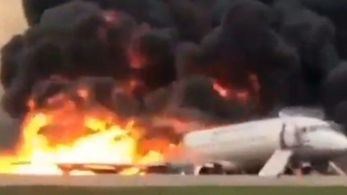 Sebuah pesawat maskapai Aeroflot milik Rusia diaporkan terbakar saat melakukan pendaratan darurat di Bandara Sheremetyevo, Moskwa, Rusia