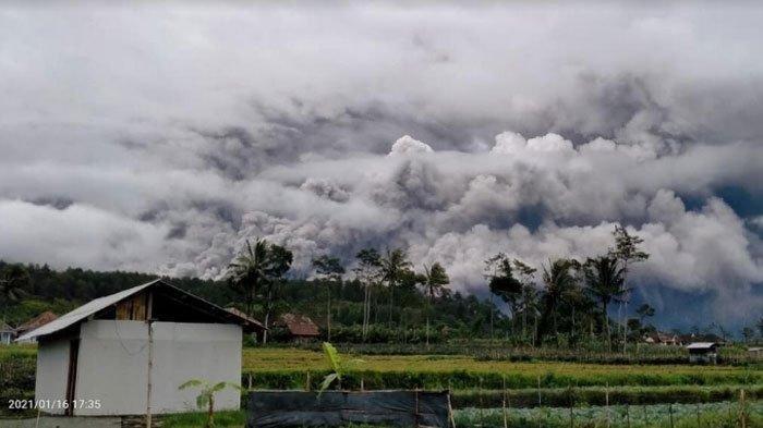 Erupsi Gunung Semeru Lumajang membuat sembilan kecamatan di Kabupaten Probolinggo diguyur hujan abu vulkanik.