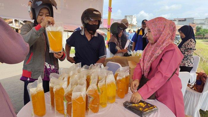 Sentra IKM Kelapa Desa Resang Lingga menggelar promo minyak goreng murah jelang Idul Adha 1443 Hijriah. Emak-emak pun banyak membeli produk ini.