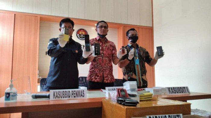Sebanyak 2.389 unit handphone diamankan dari lokasi penggerebekan dan di temukan berbagai merek diantaranya Nokia, Samsung dan Lenovo.