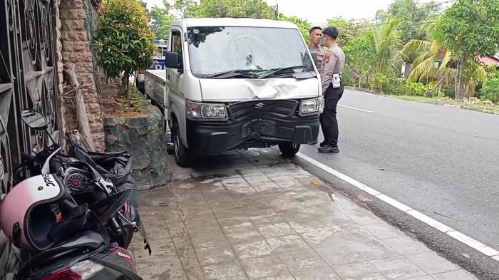 Dua remaja yang diduga pelajar tersebut menabrak satu unit mobil pick up warna putih yang terparkir di pinggir jalan.